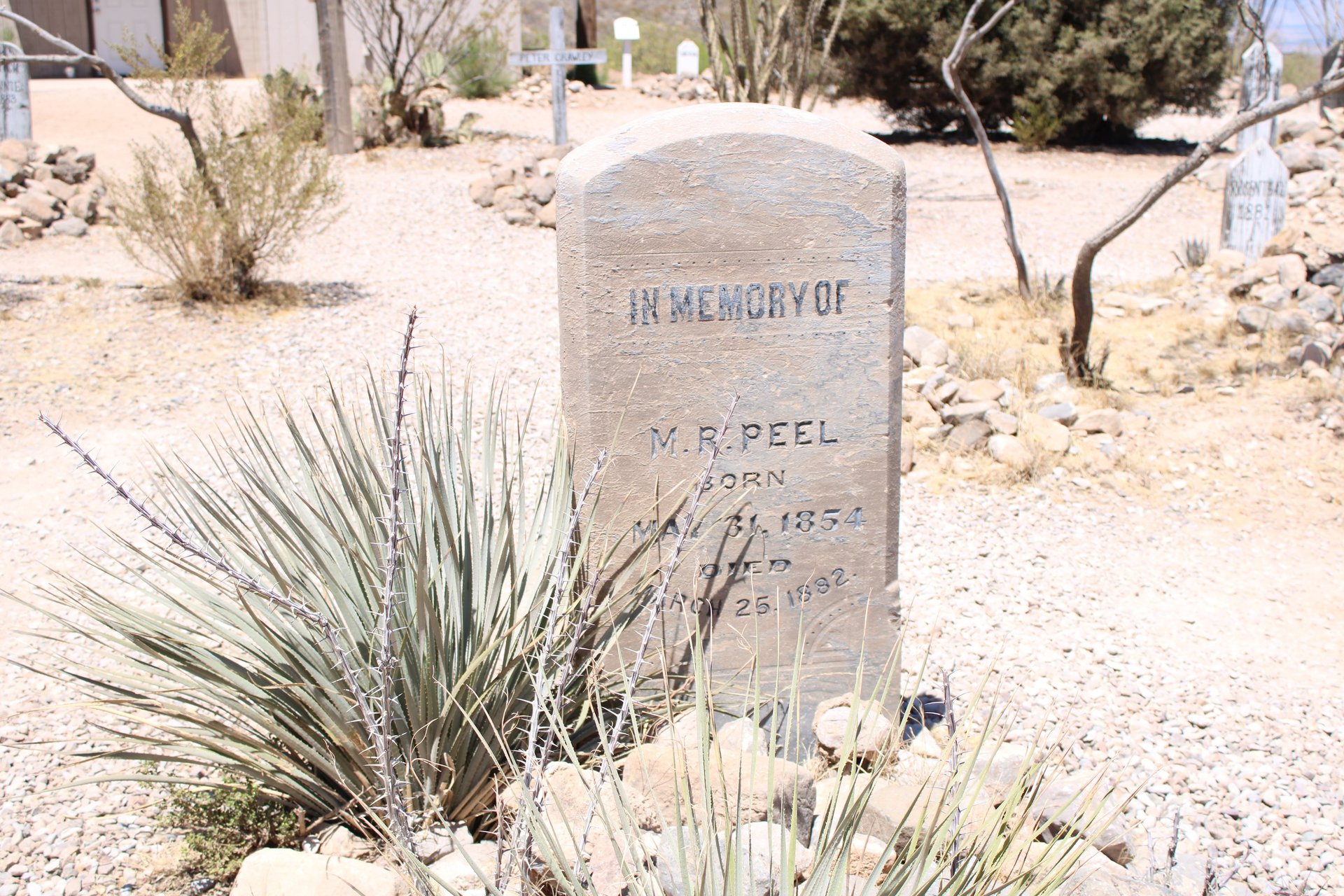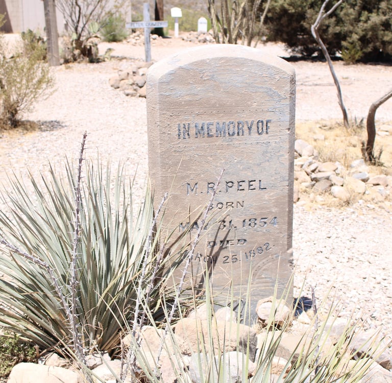 M.R. Peel Was a young Mining engineer who was shot in his office while working late. Possible suspects for his murder, were Zwing Hunt and Billy Grounds